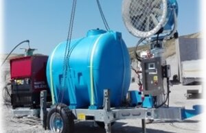 - I cannoni possono essere allacciati direttamente alla rete elettrica (220/380V) ed idrica, oppure sono gruppi autonomi costituiti dall'assemblaggio su SKID di cannone + generatore + cisterna da utilizzare in cantieri privi di allaccio idrico ed elettrico (mod. stazione autonoma Phoenix, Hydra - con getto nebulizzante erogato fino a 5mt di altezza, oppure SKID scarrabili per camion con 2 o 3 assi)