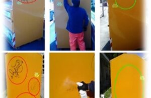 - Si utilizza su tutta una serie di infrastrutture come cestini, cassonetti, campane rifiuti, opere di mascheratura per contenitori rifiuti, paline, armadietti, pensiline, etc.; le superfici soggette a rimozione graffiti possono essere plastiche, metalliche o lapidee