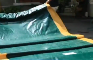 - TELO MOBILE DI LAVAGGIO realizzato in tela poliestere multistrato ad alta resistenza (1100 gr/mq) sul quale si possono lavare biciclette, motocicli, piccoli e grandi automezzi (motocarri, furgoni, camion, trattori, etc.) ed attrezzature in genere; le acque di lavaggio, se a norma, possono essere convogliate direttamente in fognatura oppure possono essere stoccate in cisterne/serbatoi (tramite idonea pompa di aspirazione con galleggiante elettronico per bassi battenti d'acqua) per poi essere trasportate a trattamento finale
