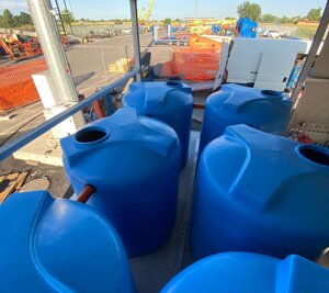 - PIATTAFORMA MOBILE DI LAVAGGIO CON RECUPERO DELLE ACQUE REFLUE di tipo modulare al fine di poter soddisfare ogni esigenza del Cliente in funzione della grandezza dei veicoli e delle attrezzature da sottoporre a lavaggio e, dato che non impatta sull'ambiente in quanto ricicla le acque reflue, non necessita di autorizzazione all'installazione (non serve l'allacciamento alla rete fognaria o canale di scolo). Possono essere posizionate in un capannone (es. in rimessaggio automezzi aziendali), oppure in piazzale all'aperto (in tal caso sarà possibile sezionare le acque piovane). Può anche essere costituita da un semplice massetto in cemento in cui annegare le griglie ed il pozzetto per la raccolta delle acque reflue (in caso di vincoli paesaggistici è possibile allargare il raggio di raccolta delle acque di lavaggio evitando così muretti prefabbricati di contenimento); per la parte di trattamento acque si prevede un unico silos orizzontale o 3 silos verticali di idonea capacità idrica (tratt. acque di tipo biologico, coadiuvato da filtro a coalescenza (per separazione oli e gasolio) e da ev. trattamenti fisici in funzione delle analisi delle acque di lavaggio (resine a scambio ionico, carboni attivi, silice, etc.) oltre che da un tratt. finale di disinfezione prima che le acque ritornino all'idropulitrice). Periodicamente saranno smaltiti i vari CER di competenza (sabbie, oli, etc.)
